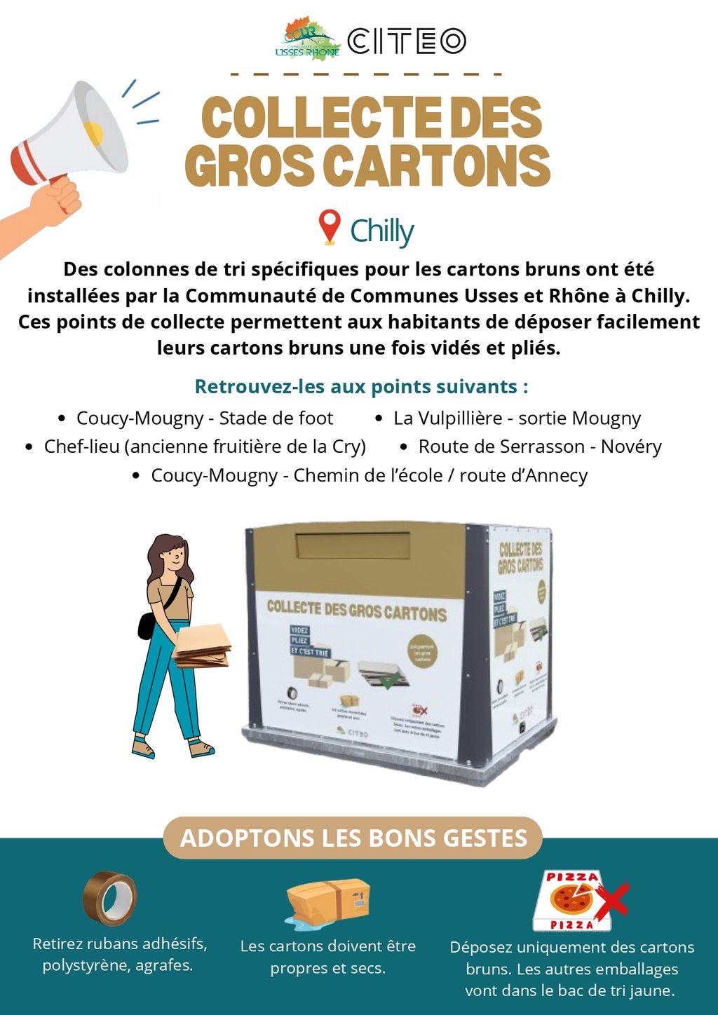 Depuis le 30 octobre 2025, des colonnes de tri spécifiques pour les cartons bruns sont installées sur l'ensemble de la commune.