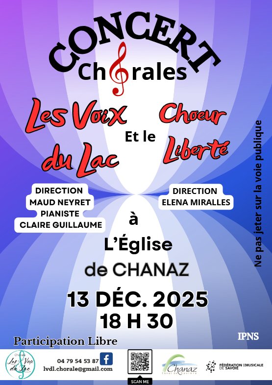 Rendez-vous à l'église de Chanaz le 13 décembre à 18h30 pour un concert avec les chorales "les voix du lac" et "Choeur liberté"