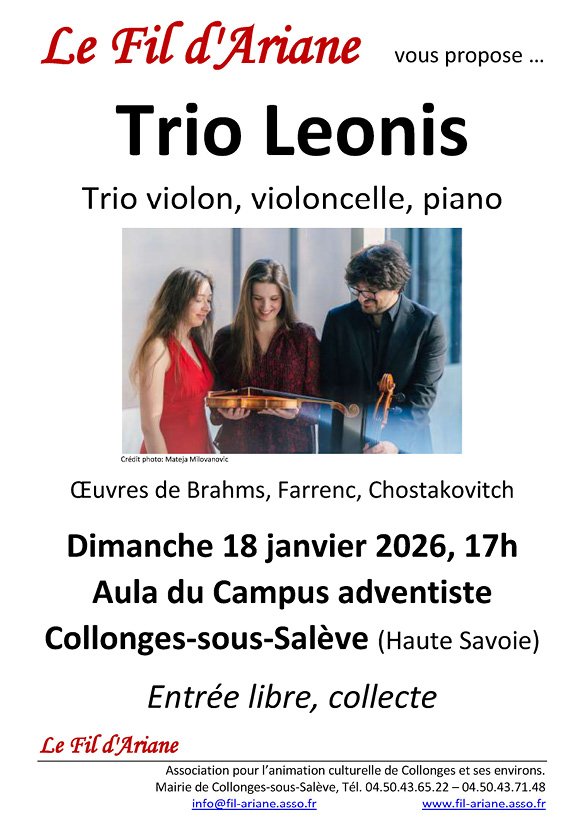 Dimanche 18 janvier 2026 à 17h, Aula du Campus adventiste, Collonges-sous-Salève