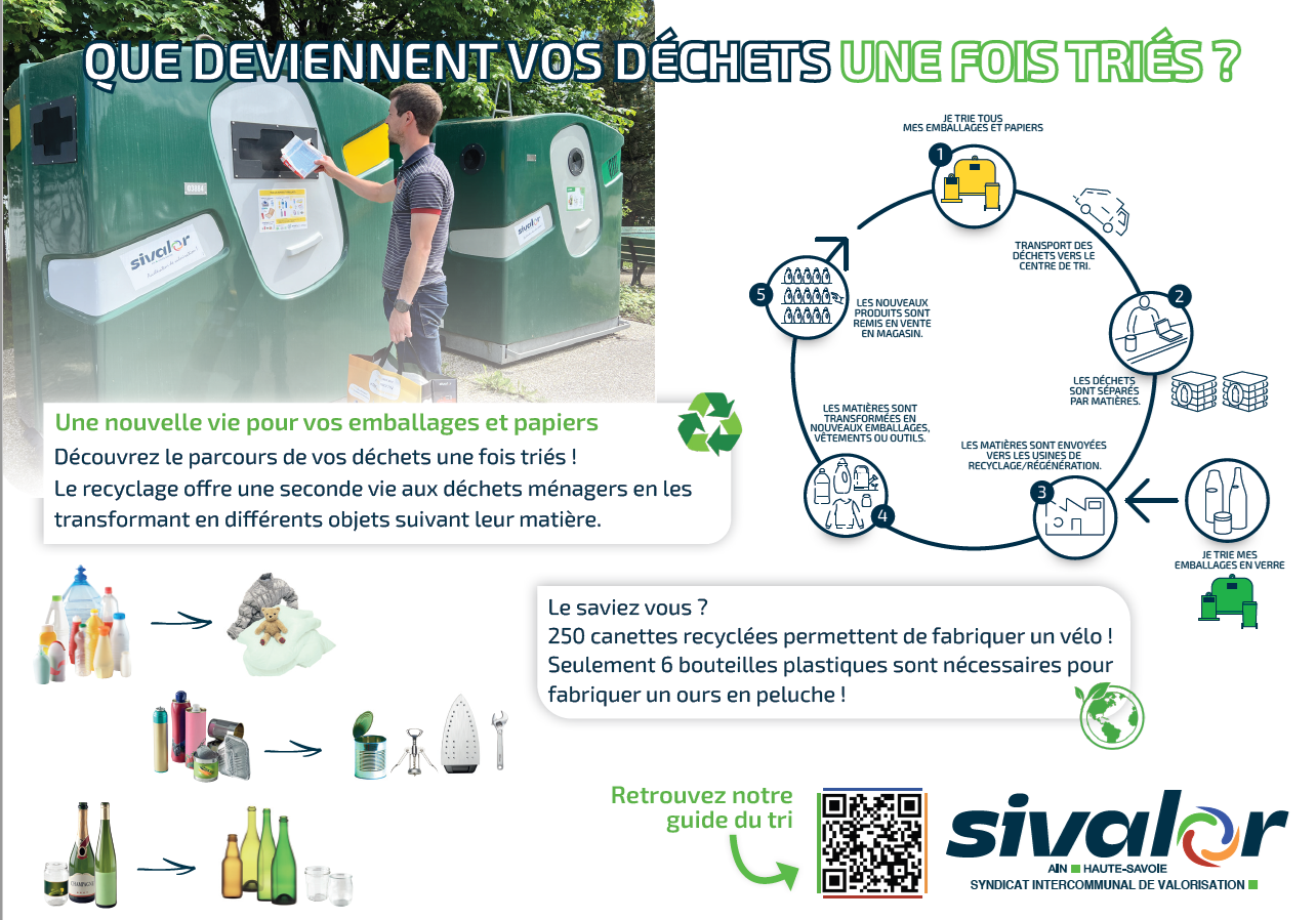Ces PAV sont ramassés régulièrement puis recyclés par le Sivalor, collectivité partenaire de la Communauté de Communes Usses et Rhône.